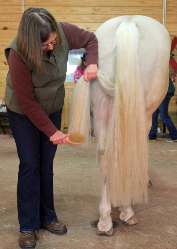 - Follow up with the bristle side to smoothen the mane and tail.